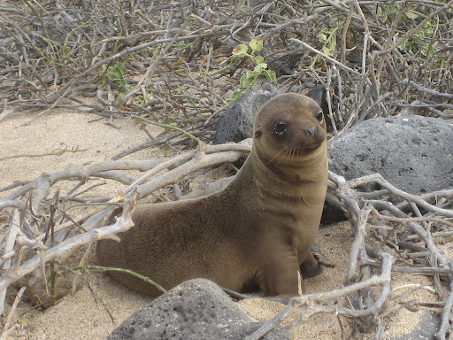 Baby sea lion with sand in its eyes, a family with baby nursing, and a beautiful mug.The famous Galapagos turtles